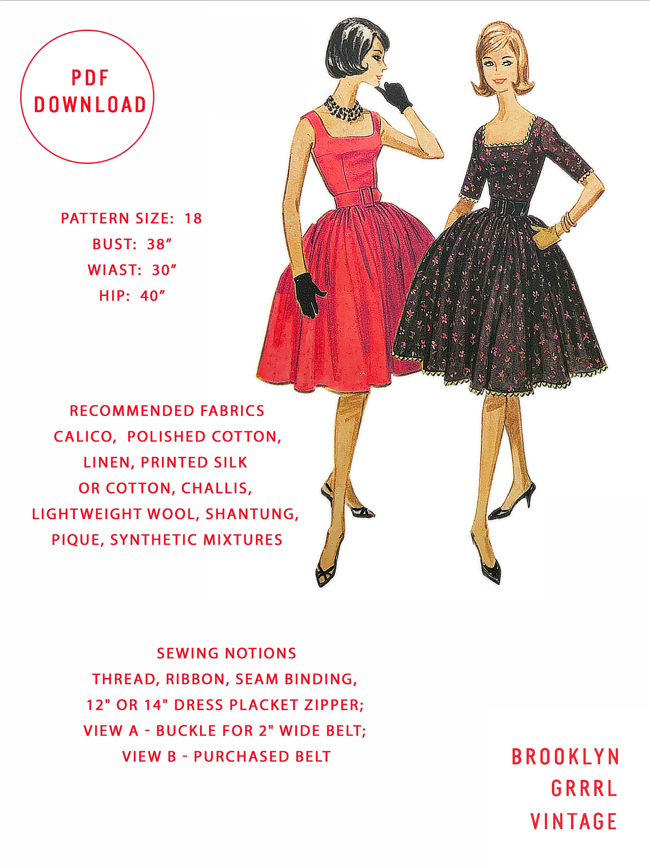 Bust 38 Pdf Pattern 50s Fit And Flare Dress With Petticoat Etsy